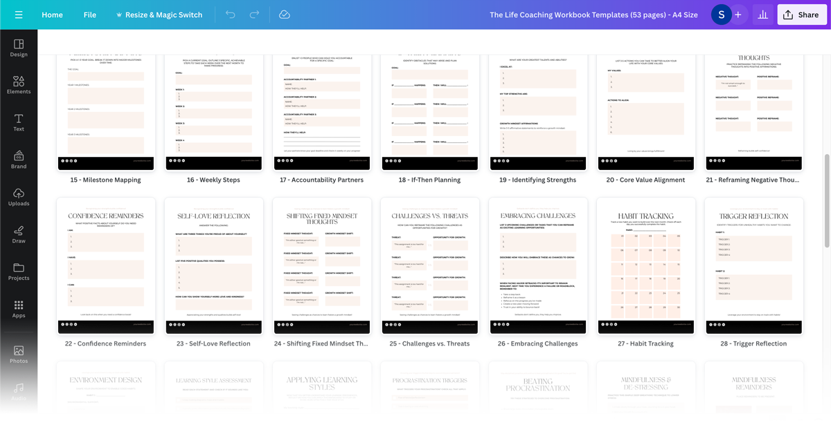 You will receive an editable Canva templates with 53 pre-written pages, all based on my best-selling workbook templates.