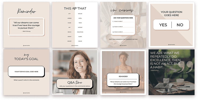 As many as you want! With this template, you can create hundreds of different posts, stories and highlights. Use it to upgrade any social media feed!