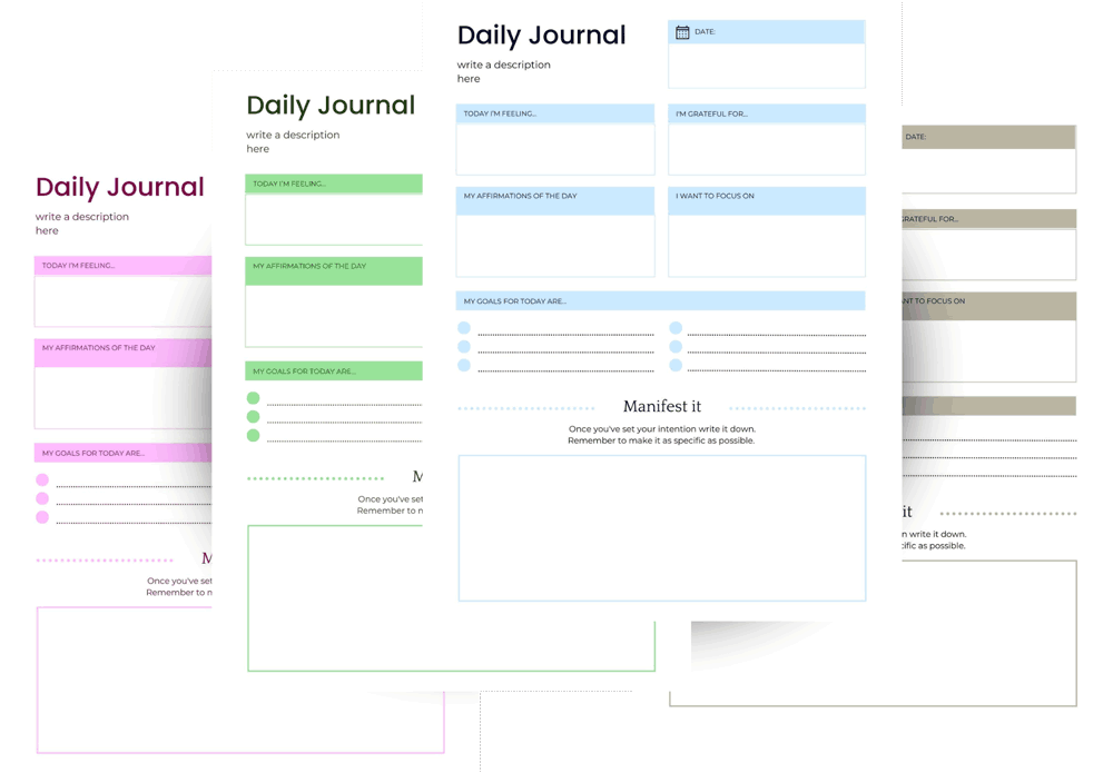 ✅ My Daily Journal – Use this 53 pages journal to help your clients stay focused, motivated, and on track to achieving their goals. I also added extra 4 Journal color variations for FREE!