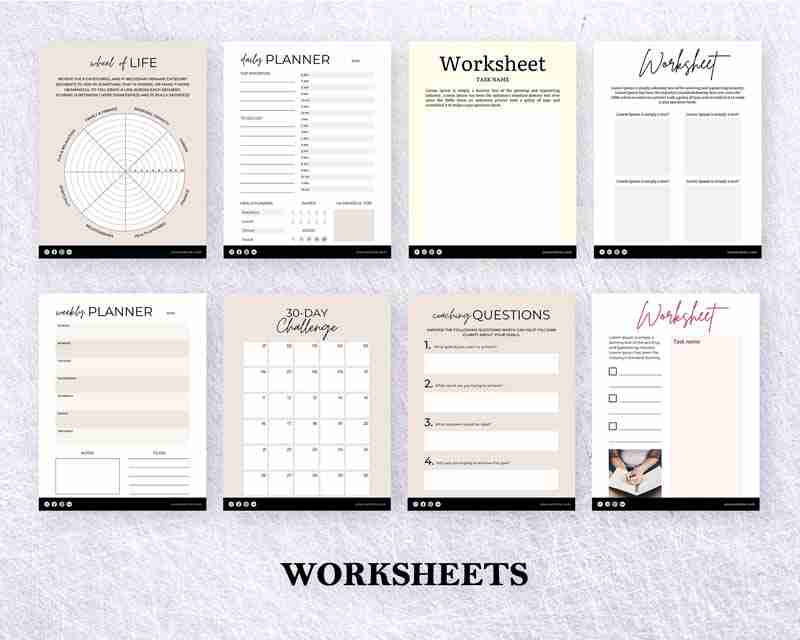 330+ beautifully designed Canva templates that includes checklist templates, workbook templates, worksheet templates, content pages, call to action pages, and more.